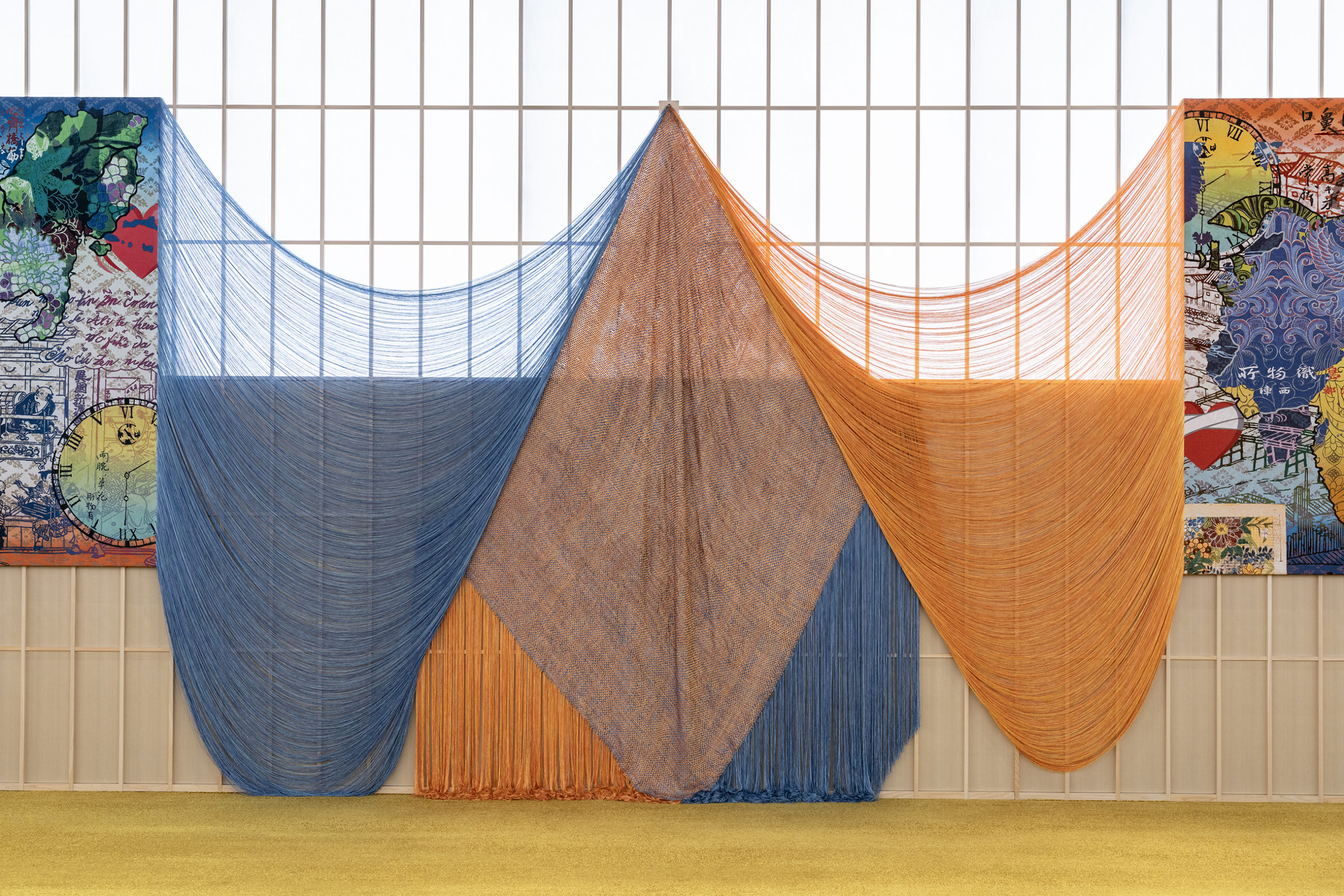 The pulse of “human curiosity about the unknown” and “courage to open up to others”, which are not recorded in historical facts, are carefully selected, dismantled, and rewoven. I hope that the motifs scattered throughout these textiles will emerge like a “mystery-solving” puzzle or constellations in the night sky, drawing out people’s imaginations and words.